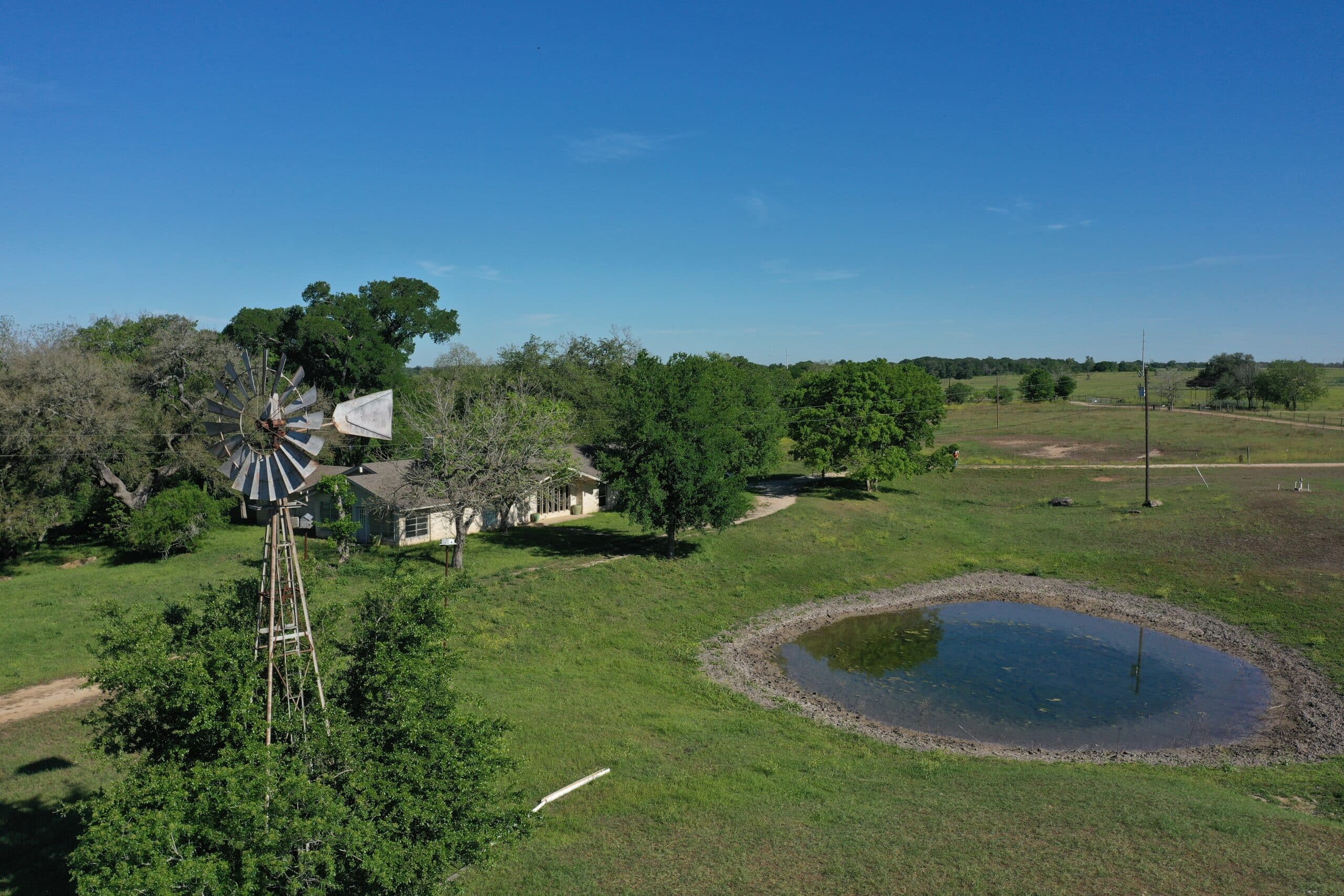 The best feature of this ranch is the 1.3 miles of San Marcos River with multiple low-bank gravel access points. There are two ponds located by the houses, which are able to be supplemented by existing water wells. In addition to the ponds, there is a large slew located just below the house, which on a normal rain year can be approximately 500 yards long by 20 yards wide. There are currently eight water wells on the property, with only four equipped and in use. It is especially rare to find a property as well-watered as this one.