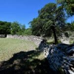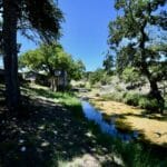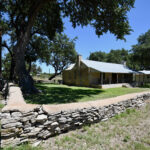 Improvements:  The original Headquarters consists of two homes, livestock pens, 3 barns and open garages.    The two homes are nestled amongst the large live oak trees and sit along the banks of the spring-fed creek. The main home circa 1939, is 1,512± s.f., 2 bedrooms/2 baths of wood construction.  The 3 bedrooms/3 baths, 1,910± s.f. native stone home was built in 1925 and was an old ‘dog trot’ style home with original windows as slits to put gun barrels in while keeping arrows out.   Both homes were renovated in 2010.  The homes are surrounded by a low native stone wall and sit next to the cedar and rock pens.  A large limestone cistern rounds out the improvements.  The garage of 900± s.f. was built in 1972. The perimeter is low fenced with 5 cross-fenced pastures.  Roads are in good condition.