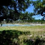 It was at the infamous Schreiner Family dinner party that Captain Charles Schreiner had each of his 8 children turn over their dinner plate to find out which part of the Schreiner’s legendary empire they would inherit.    Francis Schreiner Jeffers ended up with 60,000± Acres with these 6,243± Acres serving as its headquarters.  Grand oak trees and spring-fed creeks service the historic ranch headquarters.  This property is highlighted by both sides of the James River within the Blue Mountain Range of the Hill Country.
