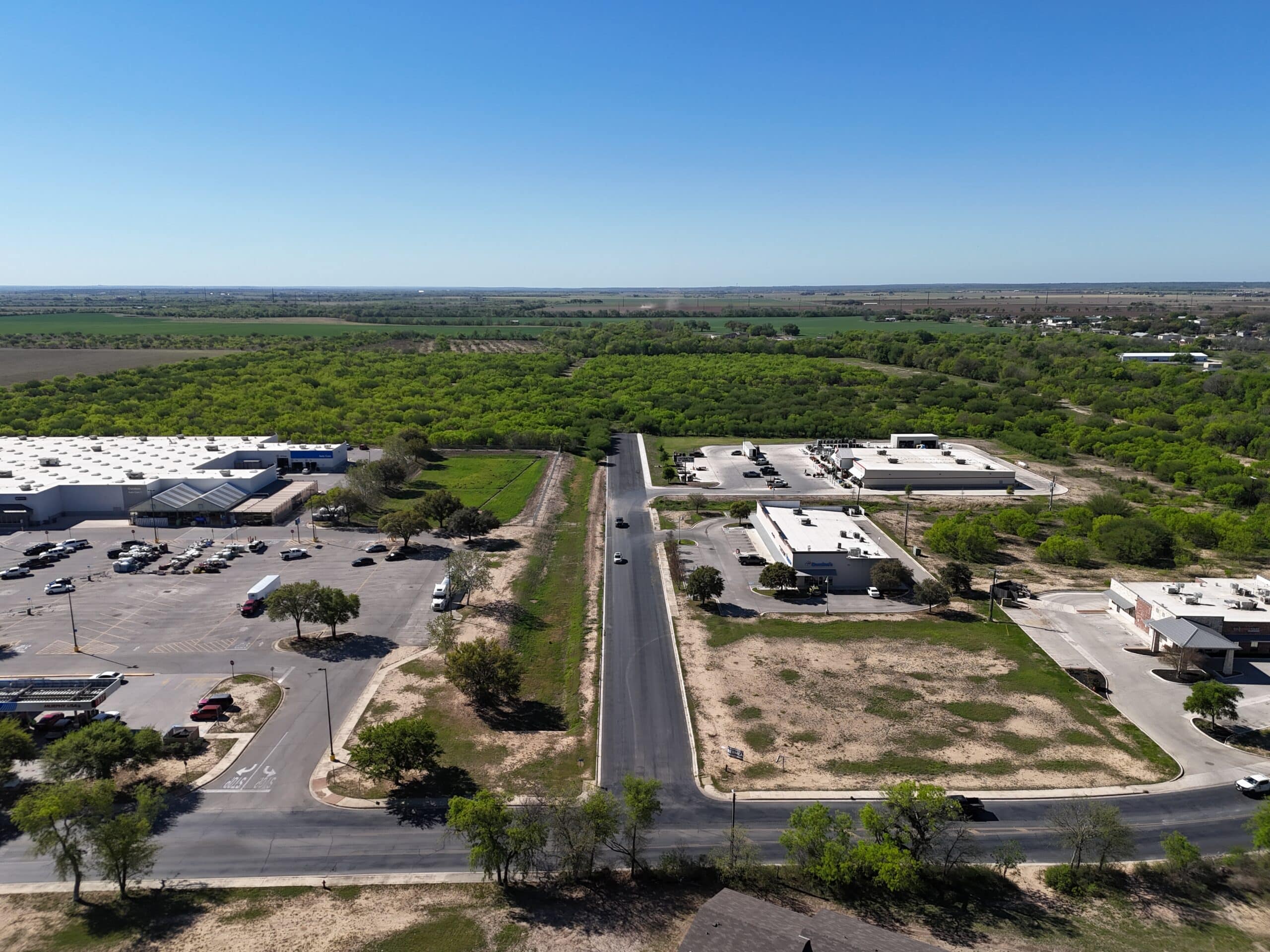 The terrain is generally level, characterized by productive Castroville and Knippa clay loam soils. Vegetation across the property consists of some scattered mature mesquite trees, with a larger portion made up of approximately 10-year mesquite regrowth. The western portion of the tract, which follows the creek, supports a heavier concentration of native hardwoods, including large hackberries, live oaks, and elm trees, offering both visual appeal and natural diversity.