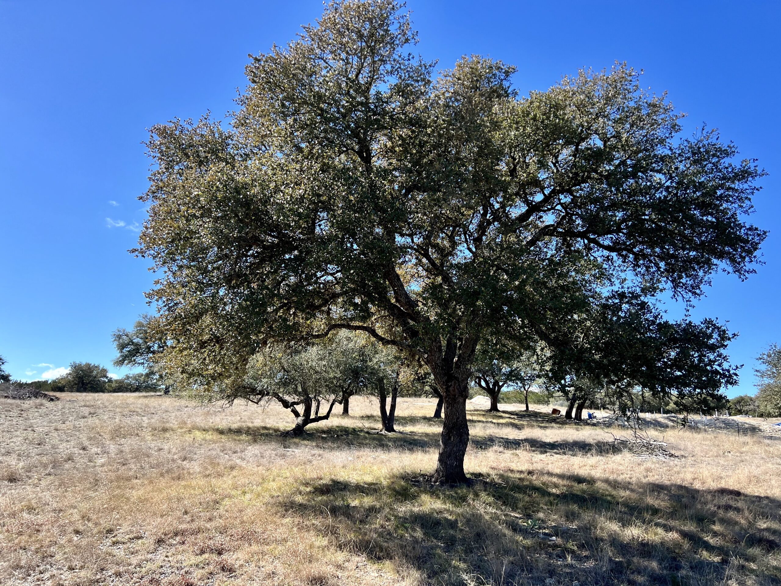 This property has usable gently rolling terrain which provides long distance views in several locations. The majority of the land has been selectively cleared of cedar highlighting the plethora of large Live Oak trees. There are patches of cedar trees left which provide privacy from the road and cover for wildlife.